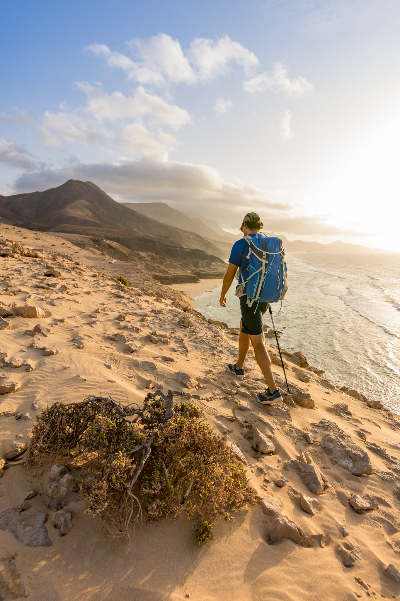 La próxima excursión a pie nos llevará por la zona de Pecenescal, en el sur de Fuerteventura, en un recorrido de 8 kilómetros (ida y vuelta) ideal para disfrutar del paisaje con calma; caminaremos entre suaves lomas y terrenos volcánicos con vistas al océano y a la playa de Cofete, en un entorno abierto y luminoso donde el contraste entre la arena clara, el azul del mar y los tonos ocres de la tierra crea una estampa espectacular, siendo una ruta sin grandes desniveles.